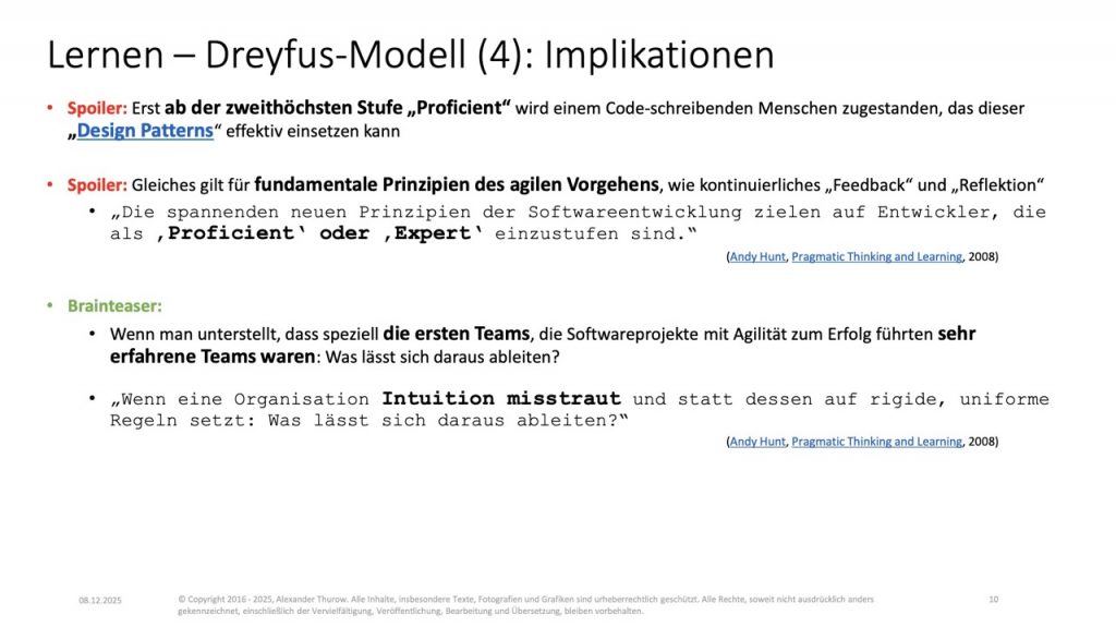 Lernen – Dreyfus-Modell (4): Implikationen
